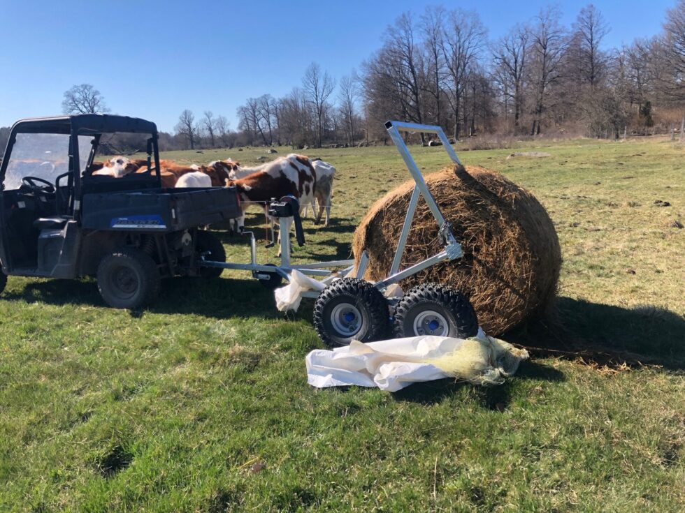Denna vagn är för lantbruk med många djur som behöver rulla ut stora balar. Med den kan en person själv sköta utfodringen enkelt och smidigt med sin ATV/UTV.
