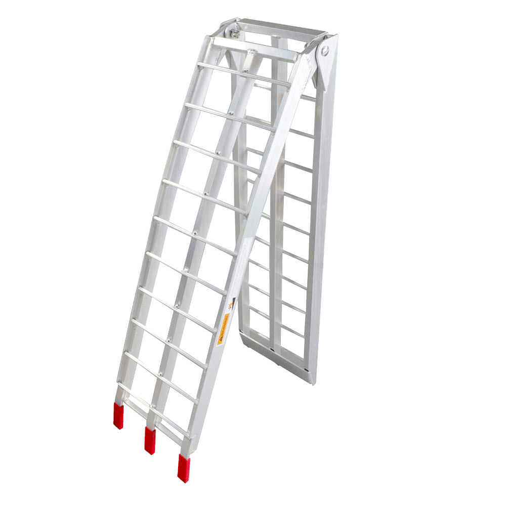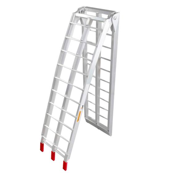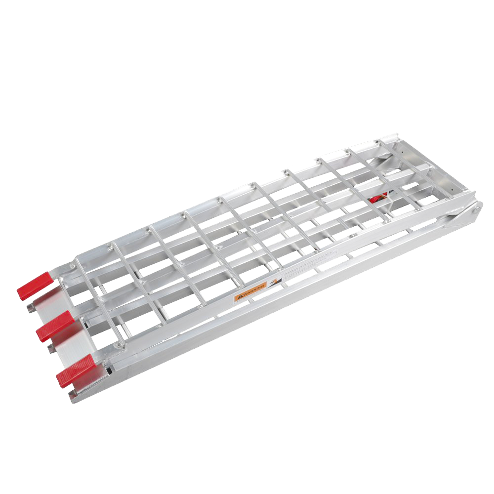 Rampen är hopfällbar och väger endast 7 kg styck vilket gör dem väldigt enkla att hantera. Gummibeklädda glidstöd håller rampen på plats samtidigt som den skyddar mot repor. Rampen kan även fästas fast med medföljande spännband för att säkerhetsställa ytterligare att rampen inte glider i väg när du lastar fordonet.