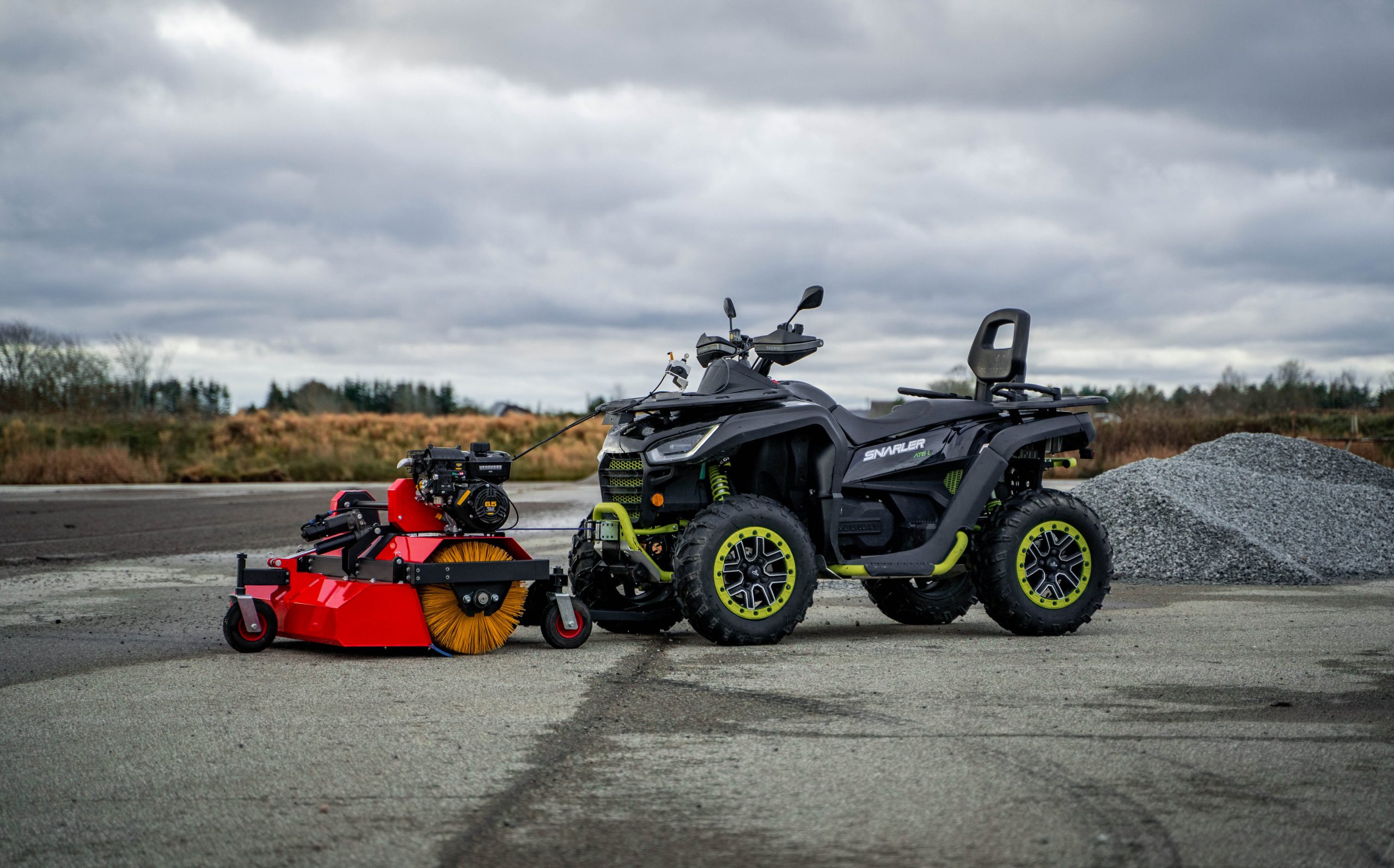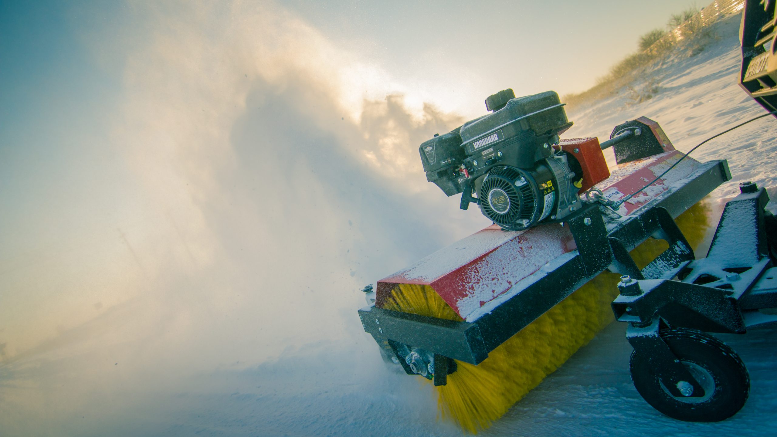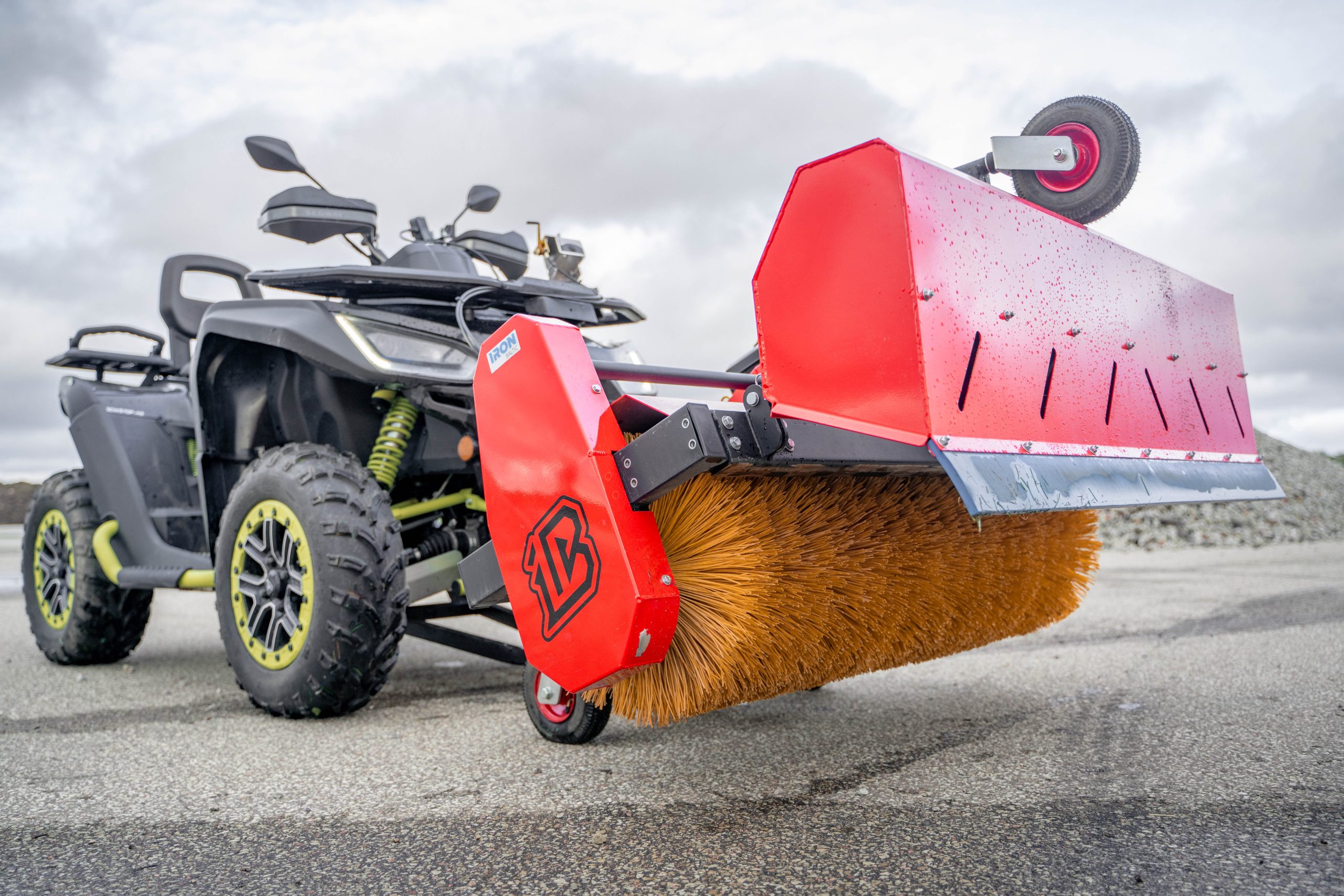Iron Baltics borstaggregat är ett snabbt och förmånligt alternativ för att snabbt röja undan och borsta bort smuts och skräp från trottoarer, uppfarter, korsningar, torg och andra större områden. Den roterande borsten fungerar utmärkt för att röja undan snö, sand, grus, löv och andra material.